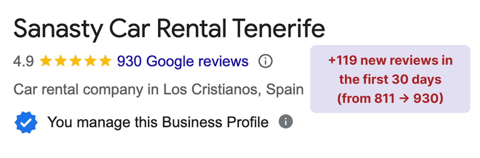 Most businesses see new reviews appear within the first few days, not months. You’ll have proof it’s working before your free trial ends, so you can be confident you’ll hit 20+ in 30 days.