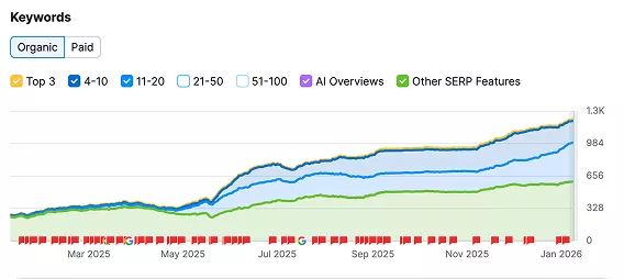 - Growth in ranking keywords