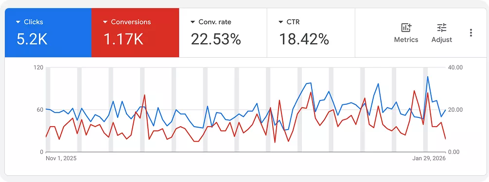 These figures confirmed that the combination of reviews, local visibility, and a clear website made paid traffic work.